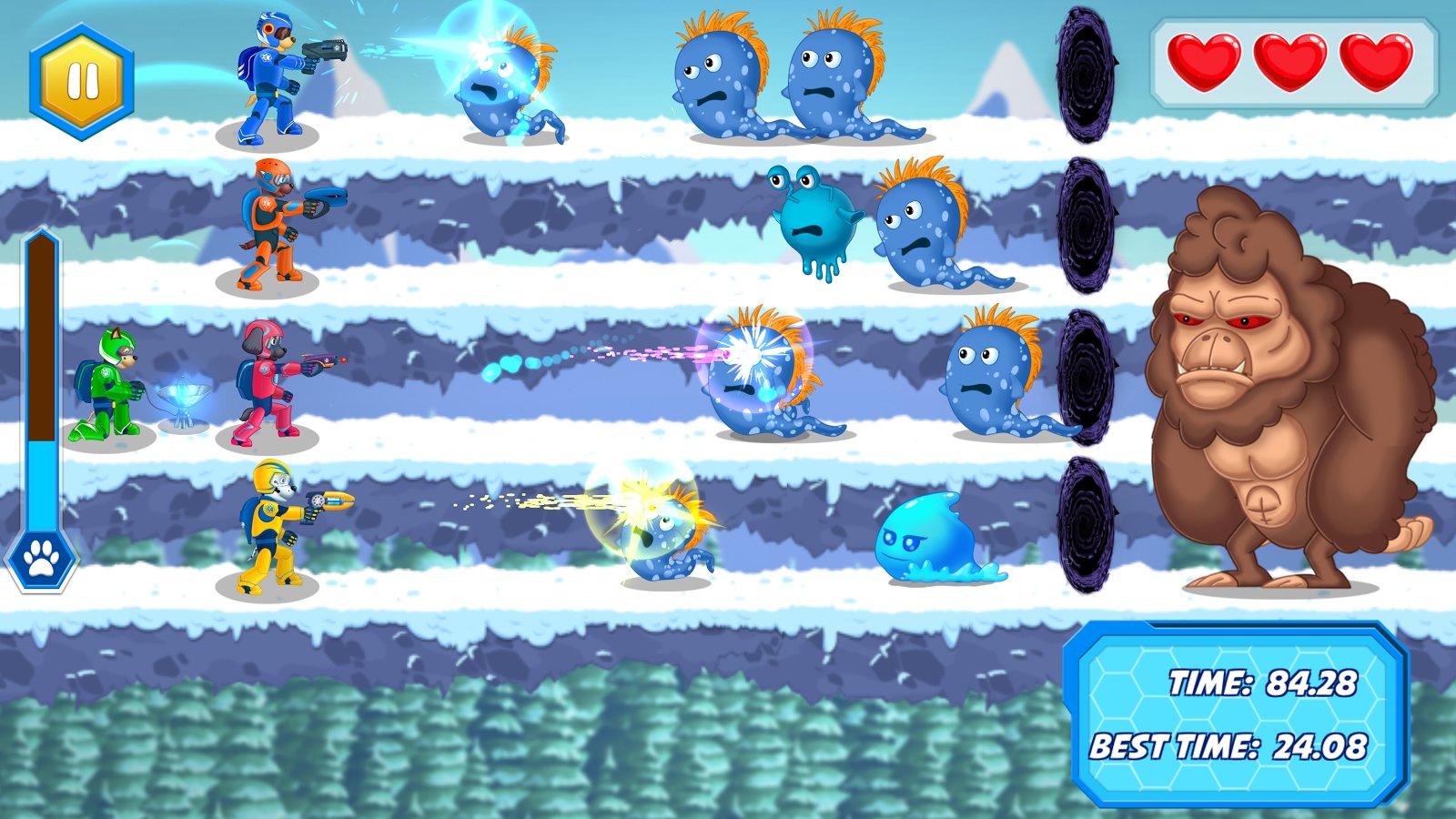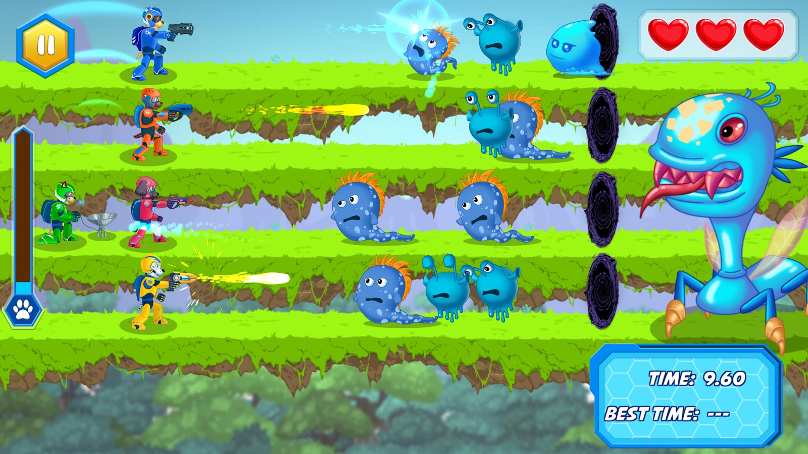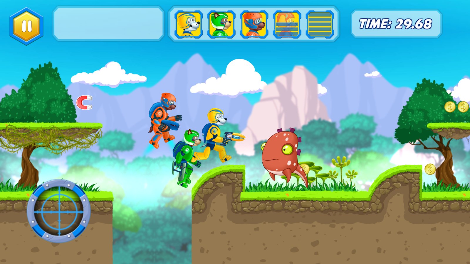 Puppy Patrol Rescue: Adventure Game – control a squad of brave puppies and save the planet from terrible monsters. Lead your heroes through numerous levels of this game and fight enemies that will be waiting for you ahead. Dark matter has infiltrated your world and threatens to destroy all life in its path, turning all into monsters. Faster put their puppies in suits and arm them with laser guns to defeat the enemy. Guide the puppies forward and apply their unique skills and abilities to deal with monsters. New arcade game will give your child many exciting battles and vivid impressions, but also will be simple and intuitive.
