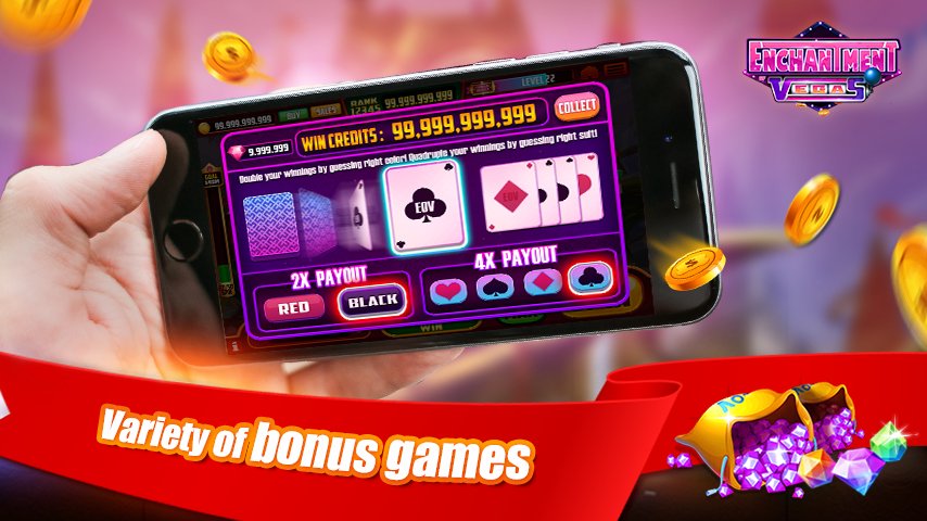 Enchantment of Vegas(EOV)-Best Casino SLOTS Ever – online gambling game for Android where you will play slot machines. Start to work the slot machine and watch how things will play out payments. This addictive game will give you an incredible opportunity to go to Las Vegas and to earn more coins. Turn the handle of the machine and become the most lucky person in the world, winning great cash prizes and becoming a winner. Enjoy a game of mini-games and get excellent bonuses and coins, which later will help you earn valuable prizes. Play this game and immerse yourself into a world of excitement and big wins.