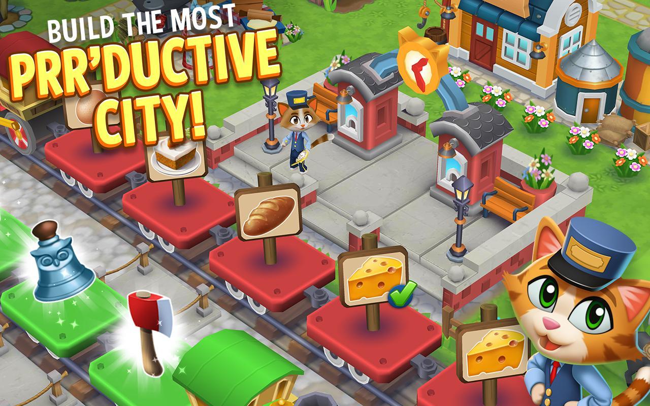 Kitty City farm on Android, where you build a city, which suffered after the floods. Your main task in this game is to build various buildings and to grow new crops to feed the residents of the city. In the game you are together with a cute cat Franny and her friends will be involved in construction, produce various resources, exploring new territory, and to plant and harvest. Do your best to return the town to its former beauty and ensure that all residents of the delicious food. Complete various tasks and fill the city with restaurants, cafes, cosy houses and fountains. Use in the game various bonuses and upgrades faster and pass the challenging levels.