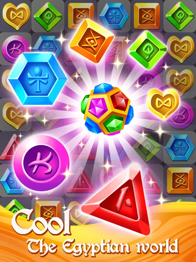 Pharaoh Jewels Crush – a game in three in a row for Android, in which you ll unravel the mysteries of the Egyptian pharaohs. In this game you will match gems and swapping them. Rely on your logic and wit in this game and make the most of the long ranks, blasting them and getting points. Use various bonuses and power-UPS faster and pass numerous levels. Achieve record results and compete with other players. Uncover all the mysteries of the pharaohs and enjoy great colorful graphics and bonuses. Complete all the levels and climb to the top of the leaderboard.