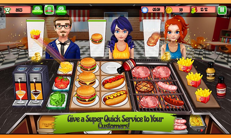 High School Happy Restaurant - Cooking Games – a game on Android where you will play the role of a chef in the school cafeteria. In this game your task will be to prepare meals and snacks for their visitors. Take orders provide visitors and cook the most delicious burgers, hot dogs and other quick meals. Use a variety and fresh ingredients and cook dishes in a certain sequence. Earn money and spend them on buying new equipment for the cafe and improve the hall for visitors. Discover new recipes and don t leave customers hungry.