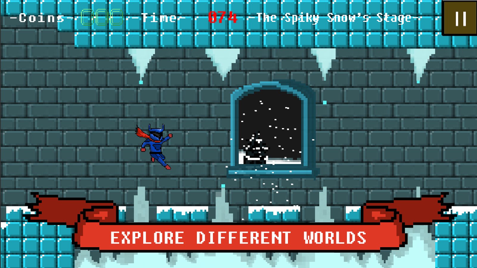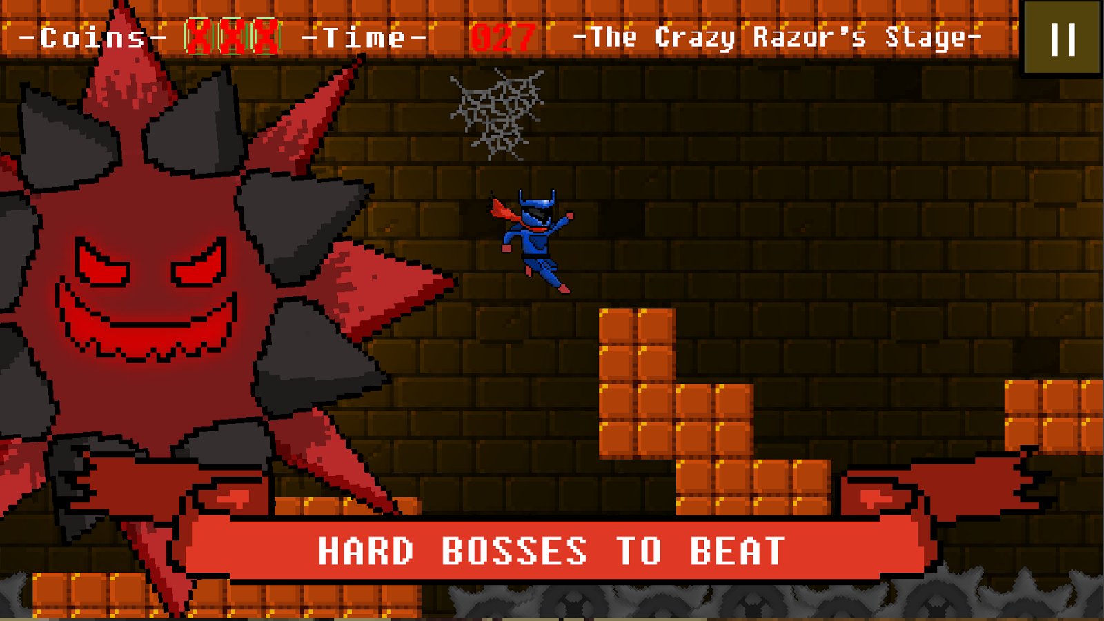 Scarf Knight Full Edition – game for Android, made in the retro graphics. In this game you will take control of a brave hero, who single-handedly decided to go mysterious tower and reach the top. On the way our hero will meet many dangers and obstacles in the form of spikes, torches and many traps. Avoid all the obstacles on the way and try to reach the finish line. Our hero has a magical scarf that allows him to perform incredible jumps and do stunts. Each new level the game will give you new worlds and unique challenges. Go through more than 16 levels, overcome 4 stages and come out the winner from the game.