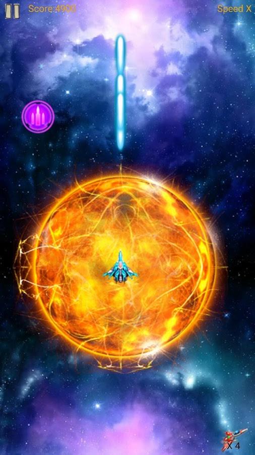 Ekstar Shooter – shooting on Android, where you are transported into outer space. In this game you will take control of a spaceship and guide it through many battles with enemies. In your Arsenal will be three kinds of space ships, each of which has its own destructive force and weapons. Destroy enemy ships, leading continuous fire on them, and fight powerful bosses, which is not so easy to win. Play this game and achieve excellent results, as well as enjoy various game effects like bombing fighter jets, missile explosions, invincible glory and a gorgeous screen. Earn points for every downed enemy aircraft and compete with friends.