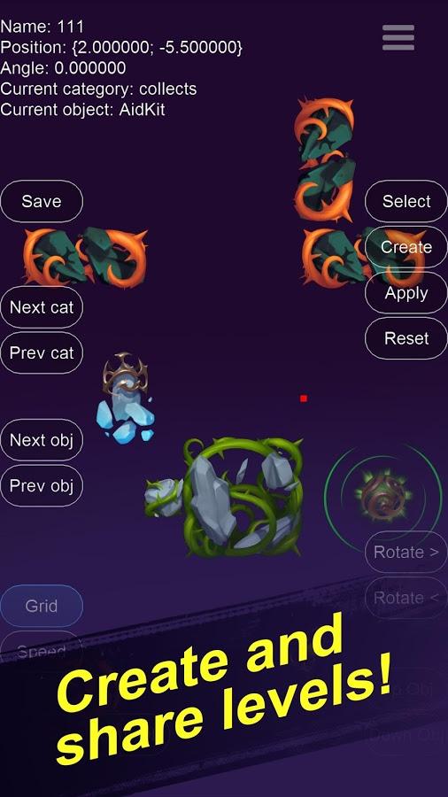 Roots: Shards of the Moon – arcade on Android, which will please you with realistic physics. In this game you will help the main hero to go to the goal avoiding the many obstacles and traps on the way. Follow from level to level and collect numerous coins that you can spend to activate passive and active abilities, in order to pass more difficult levels. Use the laws of physics and get down lower in a dangerous cave. This game will also please you with more opportunities, where you can create your own levels and share them with other players.