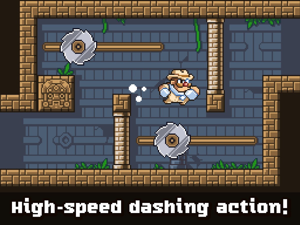 Duke Dashington is a popular adventure platformer in a retro style in which you play the role of a hapless treasure hunter, who went on a dangerous journey and being locked in the pyramid now forced to look for a way out, and on the way, waiting for him dozens of traps and enemies, while pleasant surprises are no exception. Duke Dashington Remastered - an updated version of the platformer, which received a redesigned control, improved graphics and several gameplay changes.
