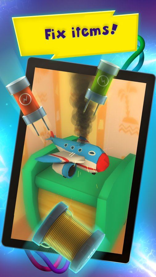 Fixies Big Secret – the official game on Android where you will help fixies to fix things. The main character of the game Fire and electrocuted and now he breaks all the items in the house Dim-dimych and the Toe, the SIM card and the Vert have to run through the house to collect bolts to repair broken items. In this game you immerse yourself in the fascinating world of friends where you can move around the room and inside the broken objects. Do not forget on its way to collect bolts, because you will need them in the future. Earn great rewards and achieve unique results.