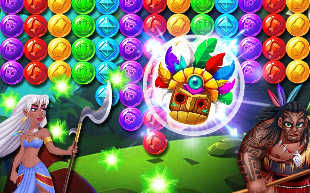 Brutal Tribe Bubble Shooter 2 – is a fascinating arcade on Android where you blow up colorful bubbles. In this game you will go on a long journey and take part in the battle of two tribes. Your task is to shoot colored bubbles at a cluster of them on top and make lines of three or more. Blow the bubbles and produce a chain reaction that will allow you to get as many points as possible. Use various bonuses and achieve incredible scores. Lead your tribe to victory and meet new people. Play this game at any free time and compete with your friends.