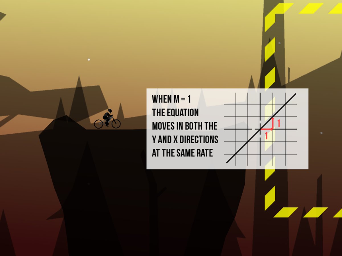 Agent X: Equation Rider - a rather unusual game which is a combination of hardcore arcade games and math puzzles. In the initial stages you will be asked to learn control of the bike on rough terrain, then the fun begins. Before each level you have to solve the algebraic equation and the decision to build a chart, which will track, and then of course to try out his creation. Visually, the game is made in a stylish minimalistichnom, and simple controls will allow you to get to the finish even on the most intricate track.