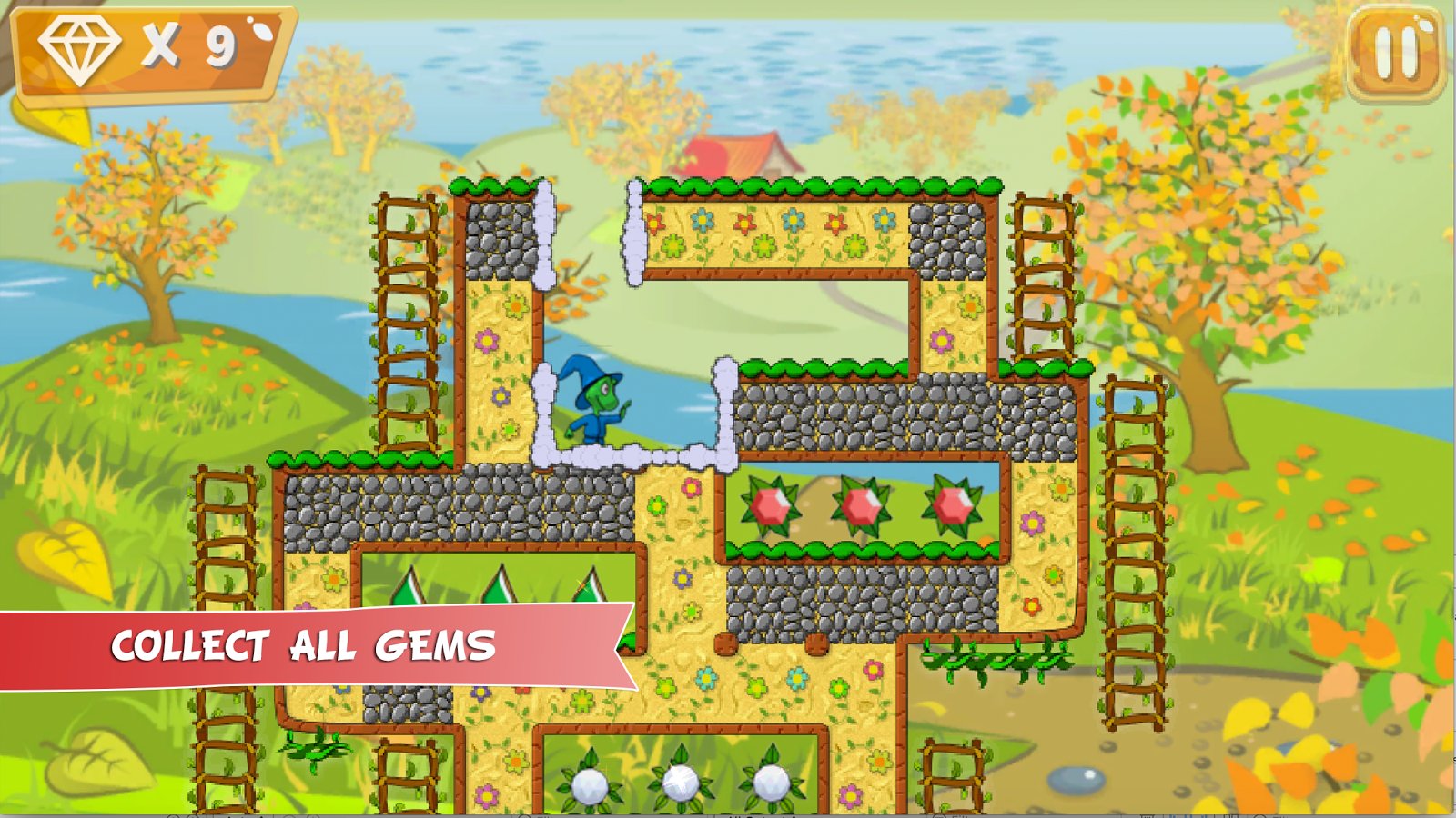 Magus: in search of adventure – guide the funny hero who is determined to find the treasure. Our hero Magus casual you were in the new world and he came back using a magical portal. And now he must return home and find hidden treasures. Explore the world around them and search for the shortest path which will lead you to the treasure. Follow the route of the old maps and navigate through the platforms, crawl the vines, jump and avoid traps and obstacles. Fight carnivorous plants and other unusual opponents and complete all 90 levels of the game.