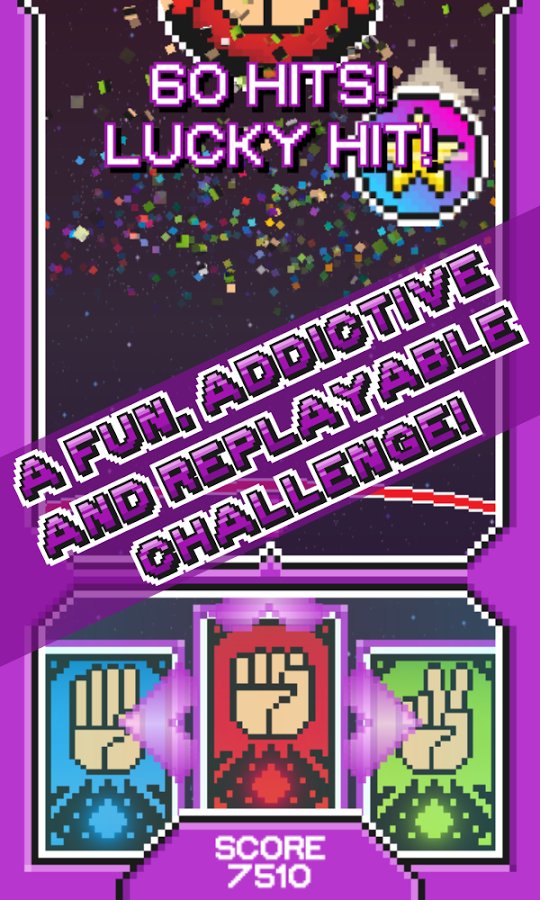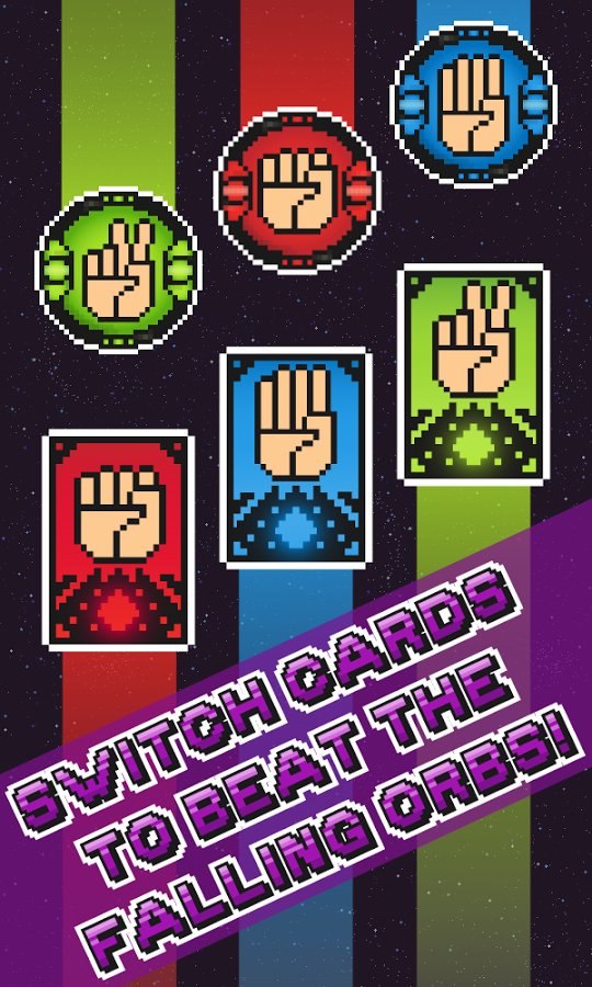 Rock, Paper, Panic! – exciting arcade game for Android, created for fun. In this game the rules are very simple, your task is to switch between the cards and destroy the enemies. In this popular game rock paper scissors you need to remember that: red green rock beats scissors, scissors beat green blue paper and the blue paper has a red stone. Switch between maps and enjoy your free time while trying to defeat the strongest bosses. Earn enough points and get record results. Enjoy the beautiful visuals and play with friends.