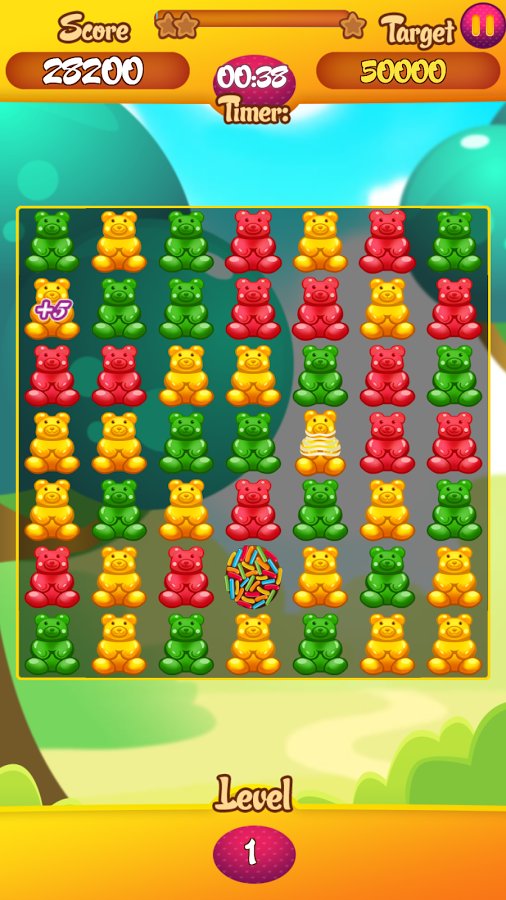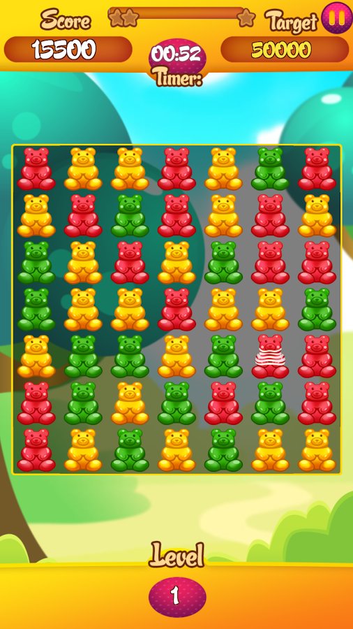 Endless Gummy Bear – the game for Android genre of three in a series where you make gummy bears in rows. Embark on a fascinating journey through the world of sweets and match three or more same colored bears in a row. Clear the playing field from the bears and earn points. On the field, and then there will be special Teddy bears, and powerups, collect them and get many bonuses or additional points. Enjoy your free time and achieve excellent results. Play this game with your friends and set a record.