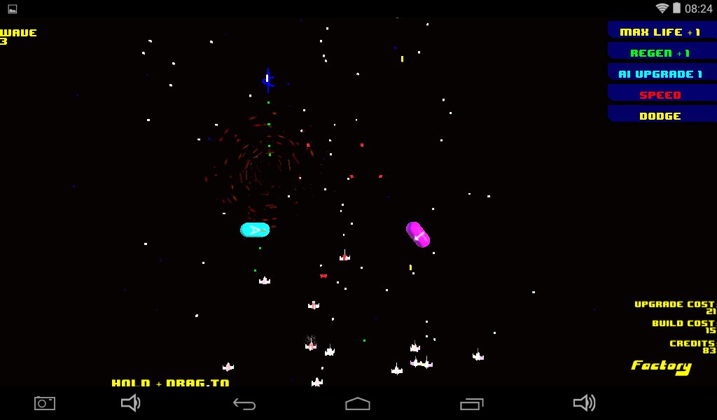 Galaxivous is a great game for Android, made in the retro graphics games of the 80-ies. In this game you take control of your garden fleet and fight back to the aliens, who arrived on our planet. Control all the spaceships and move them around the screen to destroy all the enemy ships. Earn money and have access to purchase new spaceships or upgrading of a plant for the production of ships. As soon as you start to lose your ships in battle, replace them on the standard, which ensures an increased speed, maximum life and protection shields. The game features three difficulty levels, nine types of ships and a strong army.