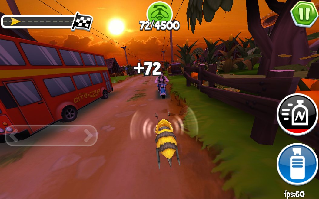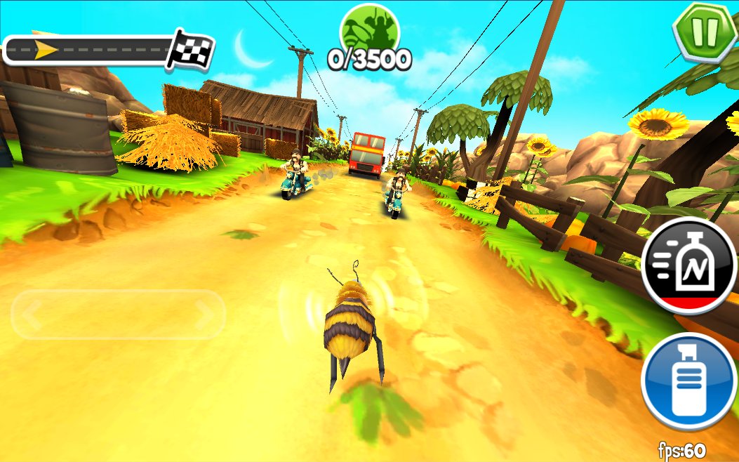 Arcade Bugs Fly - racing arcade flying game with colorful graphics in which you have the role of bees to overcome a long track with many different traps, it is worth considering that the implemented gameplay elements of this game, the track is endless and you need to overcome the maximum distance. During the passage you will collect various bonuses and amplifiers, as well as earn points which later will be able to unlock new characters. Intricate gameplay combined with excellent graphics and funny characters will give you a lot of positive impressions.