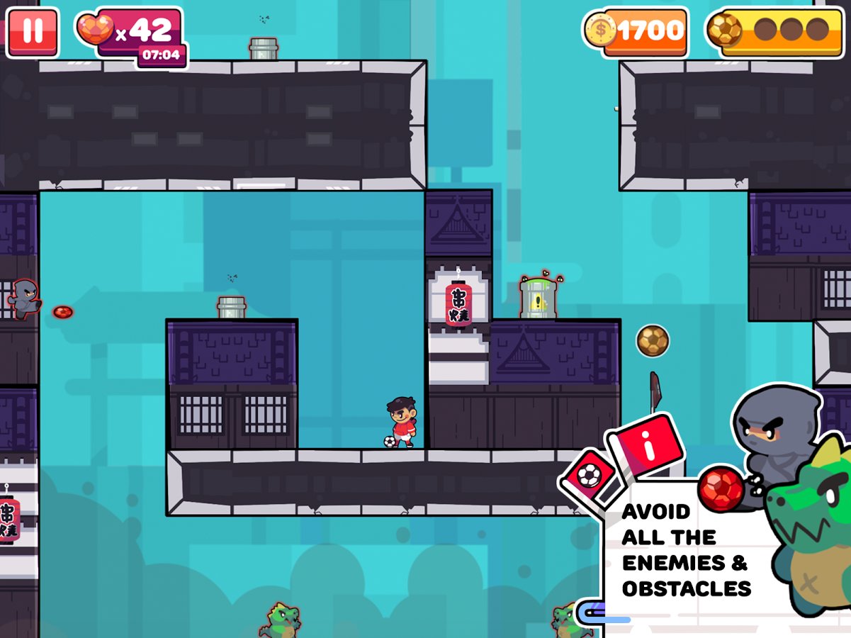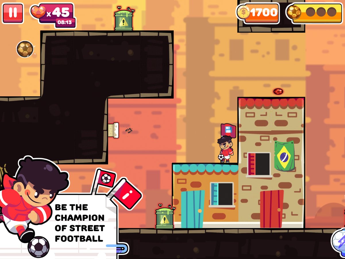 Street League – platformer for Android where you will help the footballer to score a goal. In this game you control a soccer player with the single touch of a finger to the screen and force him to run, jump and avoid many enemies who stood in your way. Prove to everyone that you are the best player and the crowd of enemies and obstacles will not stop you. Make various tricks and achievements and get valuable trophies. Play with players from around the world in multiplayer mode and show the best time, what can your hero and score a goal in the opponent s goal.