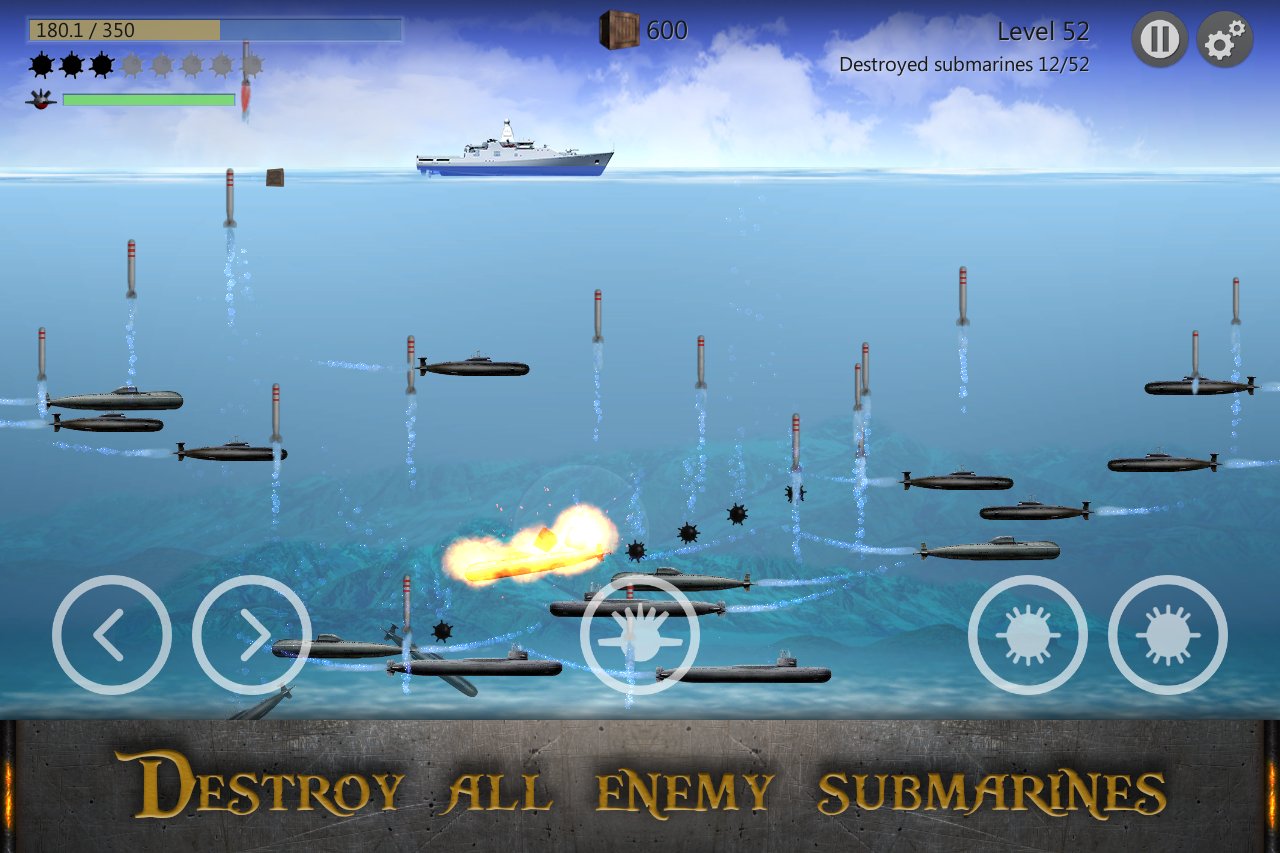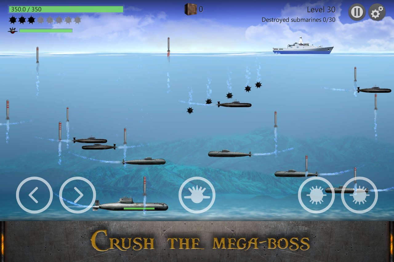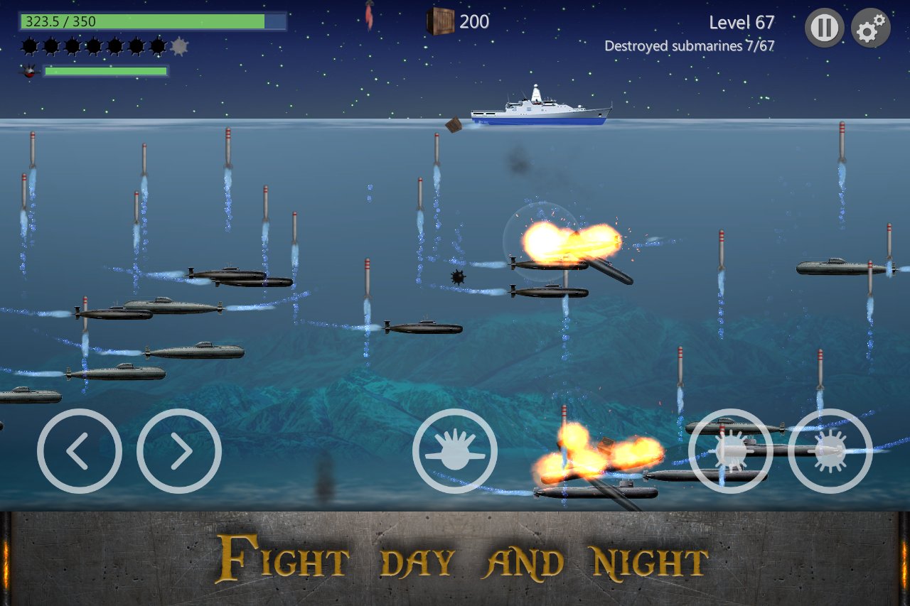 Sea Battle : War Thunder – a game on Android where you control a ship and destroy submarines of enemy. In this game your main task is not to give submarines to destroy your ship, and this will increase his agility and excellent response. Drop mines and collect the maximum number of chests that will allow you to improve the five dimensions of the ship: there will be a chance to become faster, to increase the strength of the ship, to increase the arming and speed up the repairs of the ship. Enjoy any free time and enjoy it. The main features of the game is – 4 types of submarines, the changing time of day and an unlimited number of levels.