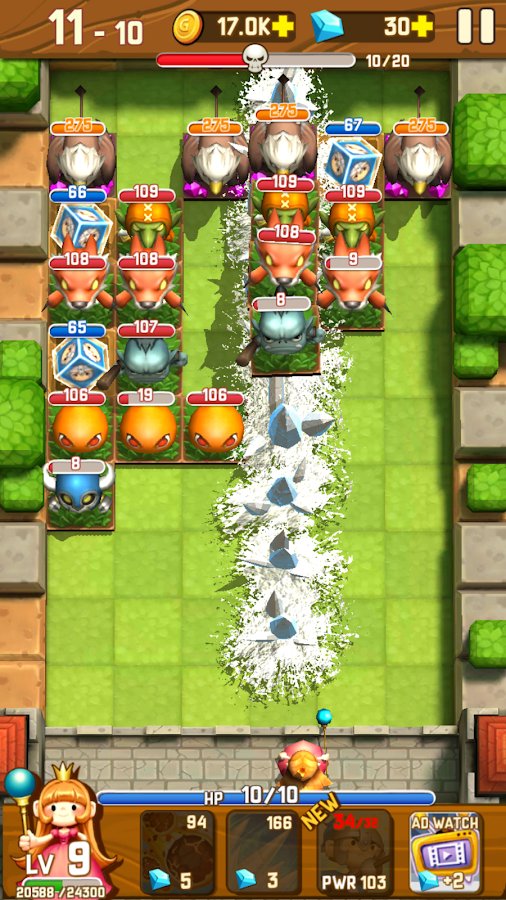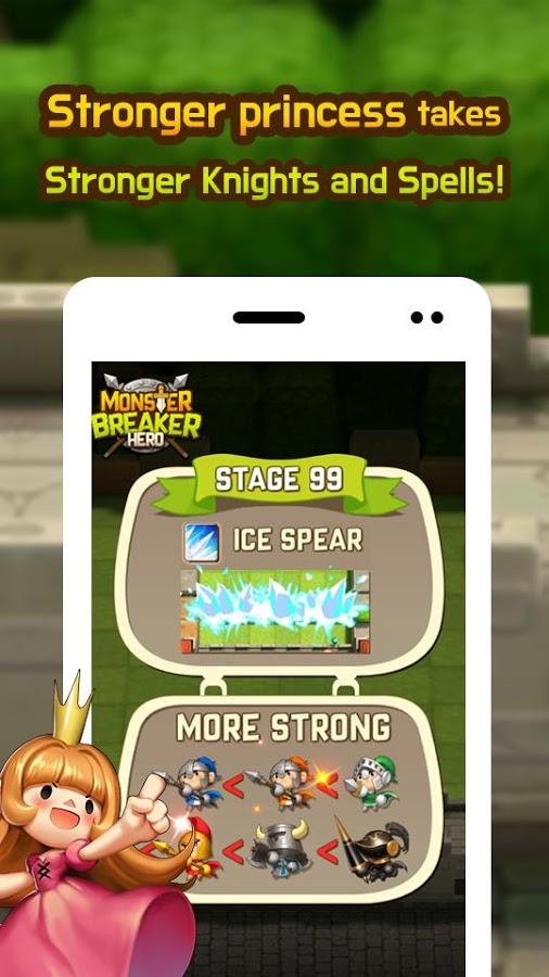 Monster Breaker Hero – a game on Android where you take control of a brave Princess and give back the monsters attacking your castle. This game resembles the well-known game arkanoid. In this game you control a Princess who has tremendous power and is able to overcome the obstacles. Tap the screen of your phone or tablet and send in the direction of the monsters and enemies the army of heroes that will be a single line to attack enemies and bounce off walls. Destroy everything in your path and don t let the enemy win. Upgrade and improve your Princess, giving it new abilities and skills. Break all the bricks and achieve excellent results.