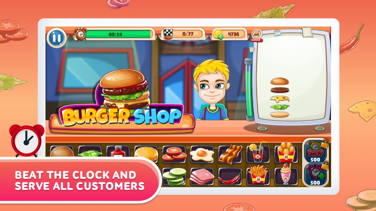 Burger Shop - top cooking game – a game on Android where you will operate the restaurant and prepare a variety of burgers for your hungry customers. Be the chef of the restaurant and cook a variety of dishes and delight your customers with a variety of dishes from fresh ingredients. Your main task will be to prepare meals as quickly as possible and not make customers wait too long for your order or they will leave unhappy and will not leave a tip. Develop and expand the business and create new recipes that are sure to attract your visitors.