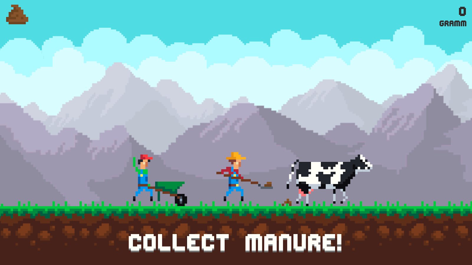 Cow Poop - survival Challenge – a fun game where you will run after cow to catch shit. In this game affected by a very serious rural problem by cleaning the streets from the dung and volunteered to take up the shovel and clean the streets. Run after and catch cow shit in a shovel while expertly casting them in the car. Enjoy your free time and run as fast as possible, keeping up with the cow Murka. The game will delight you with pixel graphics and retro voice acting from the best composers. Play this game and set their records, competing with friends and other players.