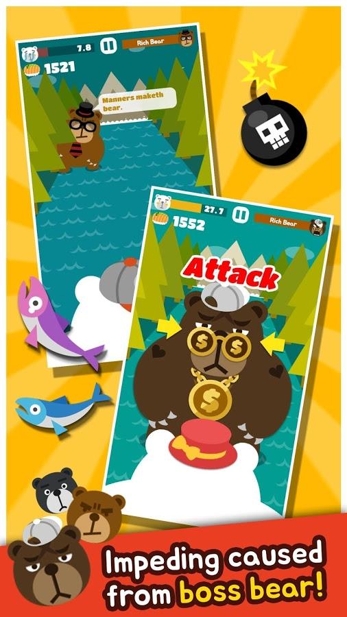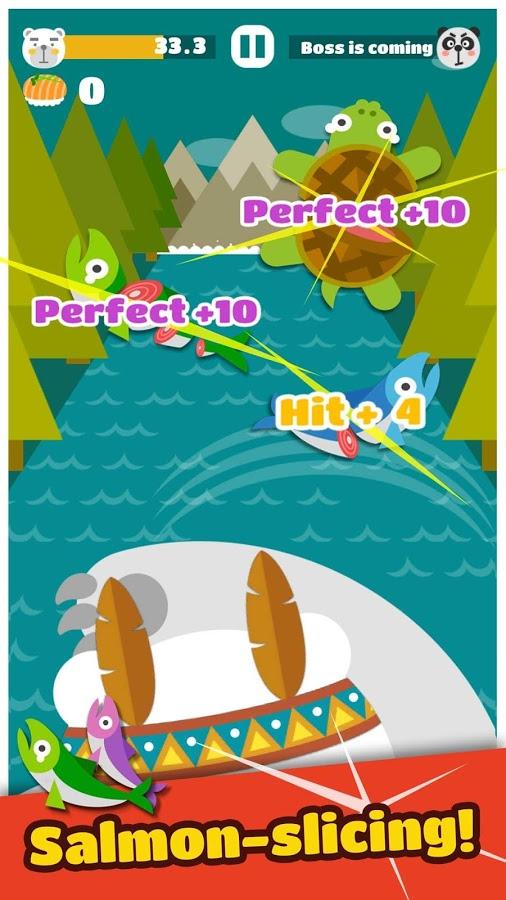 Big Bear: the Salmon Hunter is a fun and addicting time-killer in which you have to play the role of a hungry bear trying to find fishing spot. Finding the right place, our hero begins to catch his lunch, but it turns out that he s not alone and other heroes of the same dream to eat fish. Overall, the gameplay is quite simple, using swipe cut claws jumping fish, thereby gaining their living. Nice polygon graphics complementing the overall picture.