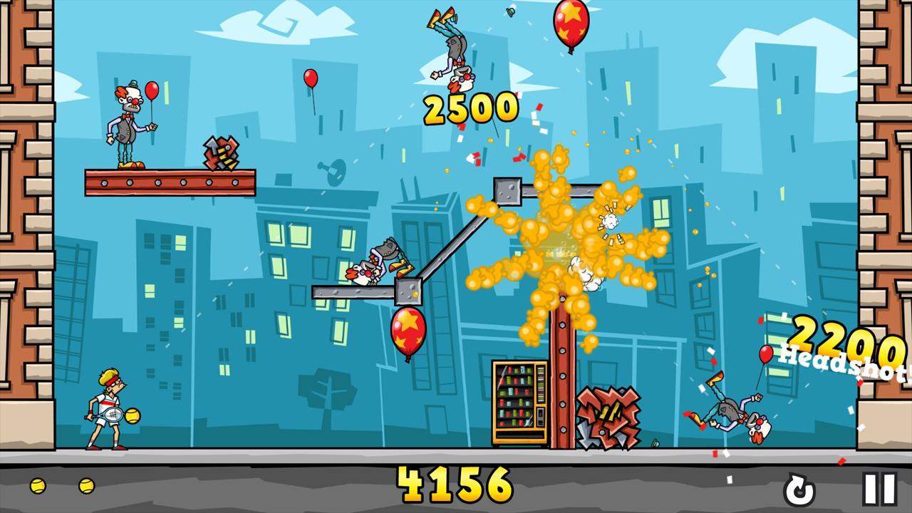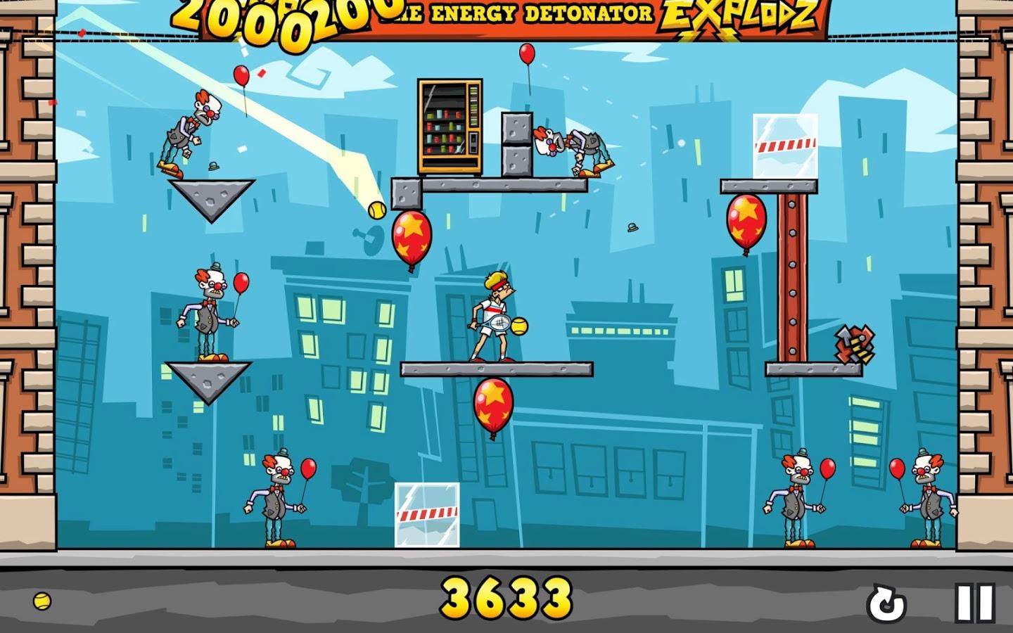 Clowns in the Face – fun game for Android where you will shoot down the clowns with the tennis balls feet. In this game you will control the main character, a tennis player who hates clowns, but they are unfortunately surrounded him from all sides and now he is not what remains how to use the paddle and ball to knock them off their feet. Zamachivalas racket and do punches in order to calculate the exact trajectory of the ball and the force of impact. Keep in mind that your ball will bounce off various surfaces, and wrap this property in their favor.