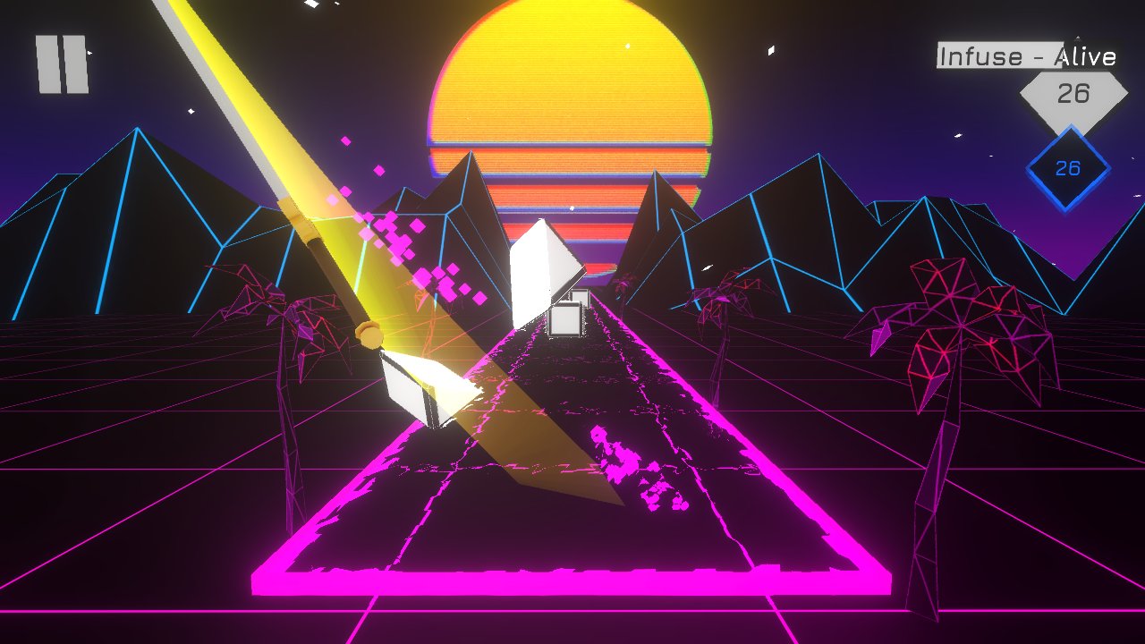 Music Slayer - a rather unusual game, game mechanics which combines elements of rhythm game, and the gameplay is borrowed from the famous Fruit Ninja. So, your task is by means of swipe to cut the flying on the blocks, with all the gameplay takes place under your chosen music, and as a result it is best to play with headphones. Hallmark Music Slayer is an excellent three-dimensional graphics, which is not typical for projects in this area, as well as a choice of all kinds of weapons.