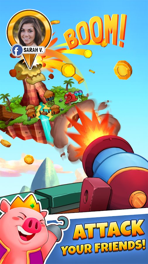 King Boom - Pirate Island Adventure – become a brave pirate and go on an exciting journey through the floating Islands. In this game you will control a pirate ship, and play the role of the captain who gives orders for the destruction of the Islands of the enemy. Attack the Islands of other pirates and shoot them from a cannon, while taking all the gold for themselves. Build on the collected gold their impregnable Islands and do not let them capture the enemy. Rotate the wheel and check on the fact of his fortune, receiving prizes and treasure. Enrich your team with new heroes and play with your friends in this exciting game.