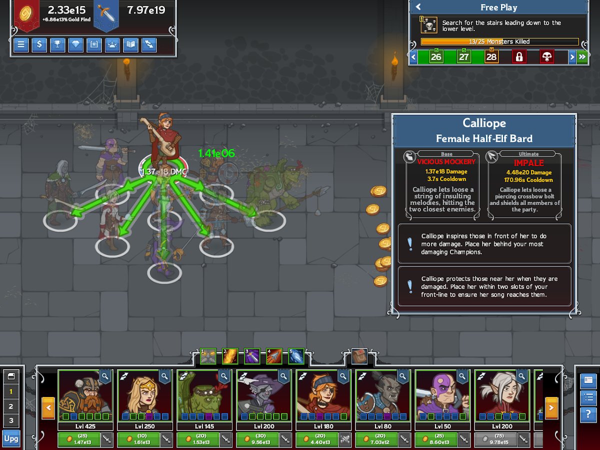Idle Champions of the Forgotten Realms - adventure clicker which you have to assemble a team of explorers, warriors and fighters and fight against various monsters. It is also worth noting that the game is created based on the universe of D&D and tactical turn-based strategy significantly diversify gameplay, and excellent graphics and sophisticated characters will add flavor. In addition, you have to take part in such events as yranny of Dragons, Elemental Evil, Rage of Demons, Curse of Strahd, Storm King s Thunder and Tomb of Annihilation.