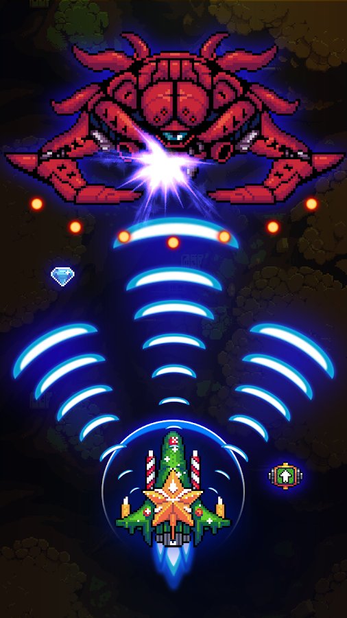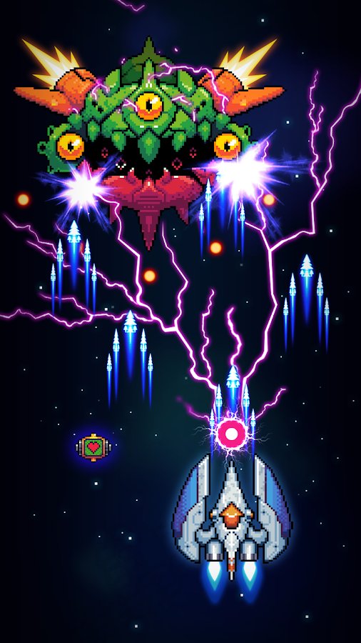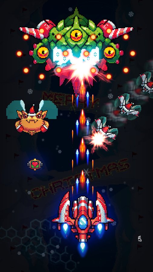 Falcon Squad - Protectors Of The Galaxy – scrolling shooter for Android where you will clear the space from aliens. In the near future, humanity has managed to conquer many planets in the solar system and turn them into their colonies. Anticipating the danger to themselves of an alien race decided to use all their firepower against humanity. Aliens suddenly attacked because of what humanity has lost a lot of their planets and now your task is not to allow the aliens to take the last planet. Control a spaceship and fight aliens. Fight against bosses and upgrade your spaceship.