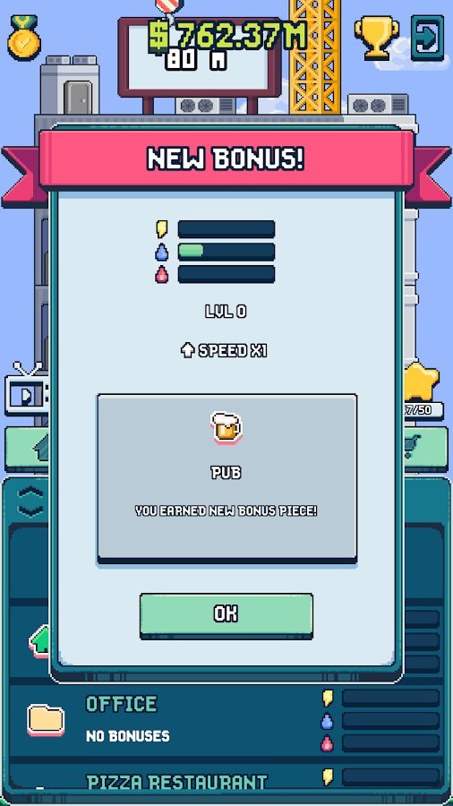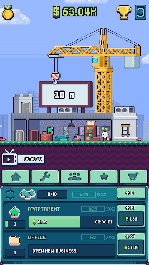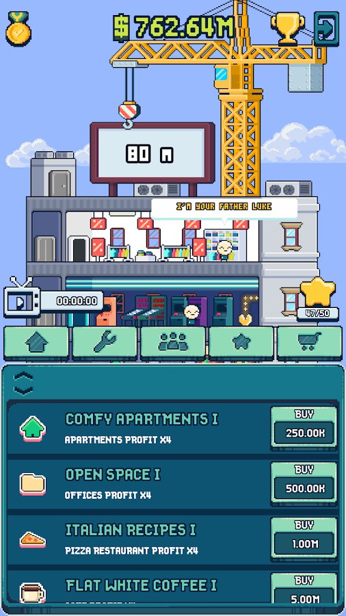 Idle Tower Tycoon is a pretty original game in which you have to play the role of an economic magnate and owner of a huge tower, which is yet to be built. But as construction you will be able to rent other offer or pull their own projects, of which a few dozen. The game mechanics are presented in a mix of clicker and Tetris. So go ahead and show that you are worse than trump.