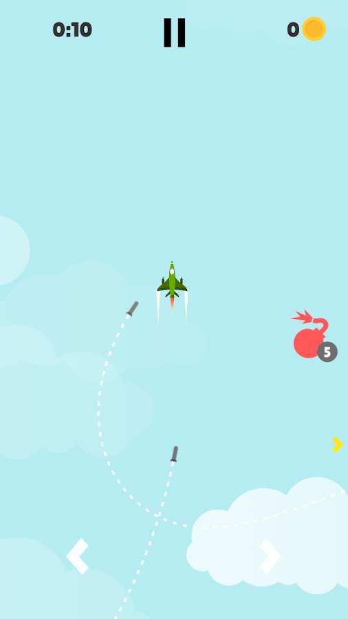 Air Missiles – a fascinating arcade on Android where you will operate a plane. Become a pilot of an airplane and perform various maneuvers and the dead ring, moving around vast locations. Your main task in this game is to collect as many coins and bonuses and Dodge the pursuing missile. Complete daily challenges and compete with other players for best results. Discover new planes and apply bonuses that will help you evade missiles.