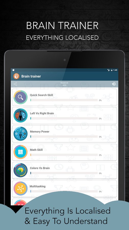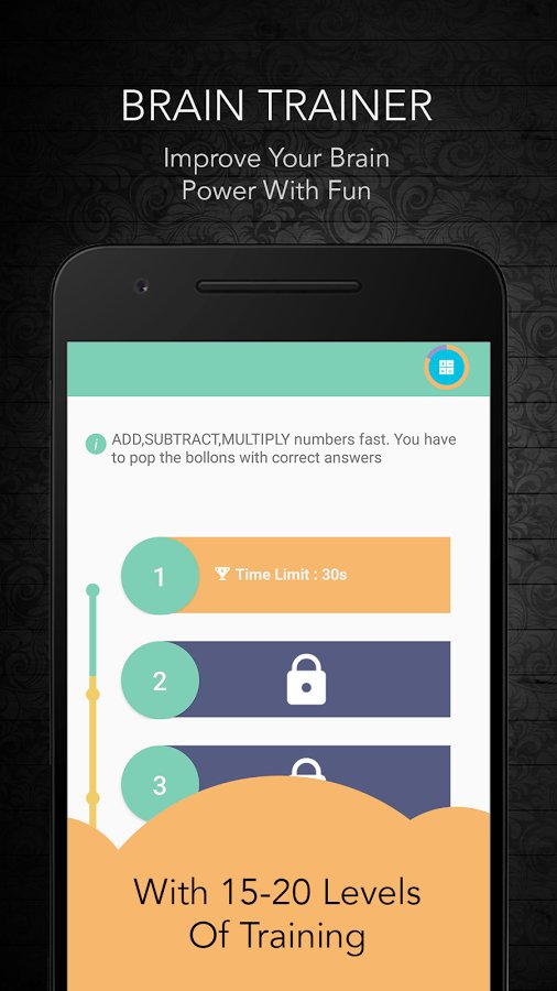 Brain Training – a game for Android, which will train your brain. In this game you will find 15 types of exercises for the brain that will help you to improve memory, concentration, mental speed and accuracy. This game will test all skills of your brain and force you to work all of its departments. Apply multitasking skills, a quick search of solutions, mathematical skills, focusing ability, color and the brain, memory power and left vs right is not the whole list of tasks that you have to solve. Show the best results in the game and compete with your friends.