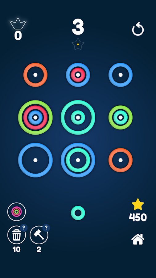 Stackz - Put the Rings on: Color Puzzle is an original game where you will have the rings of different diameters on the playing field. Your task will be to arrange rings so as to form them into rows horizontally, vertically and diagonally and remove them, freeing up space for others. Improve your powers of observation and ingenuity and place the rings in the right places. Get a great reward for through levels and survive in this game as long as possible. Game players will appreciate the nice graphics and simple controls. Play with friends and climb as high as possible in leaderboard.
