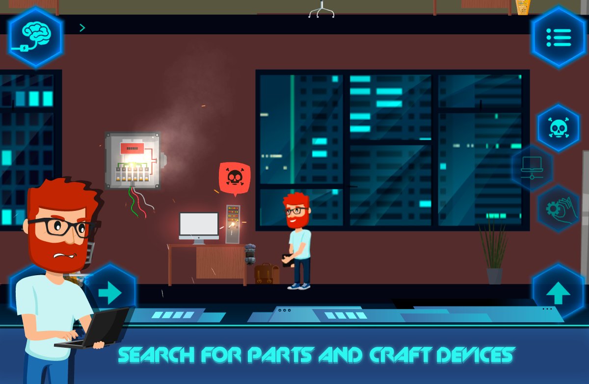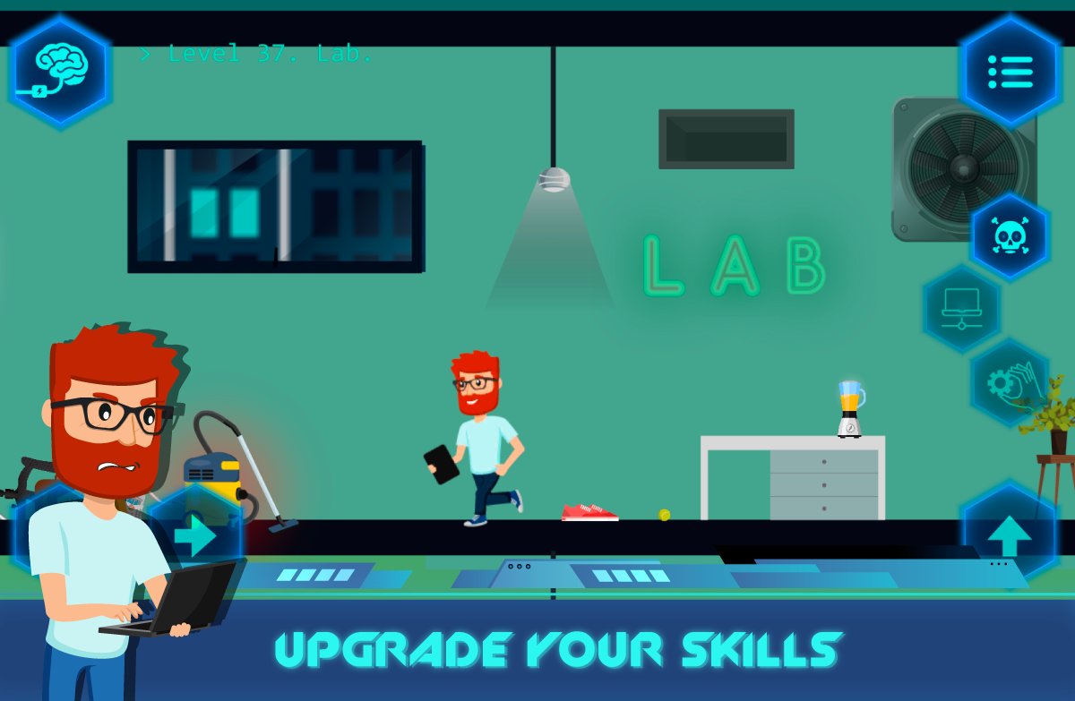 Software Riot is an excellent platform game for Android where you will help the programmer Jimmy to rescue their colleagues. In this game you find yourself in the office of a large software company where all the devices are struck by a computer virus. Our hero woke up in the back and found that all colleagues are gone, and the equipment affected by the virus. Now your task will be to overcome this awful virus and to rescue their colleagues from captivity, and for this you will need to enter the top floor of the company and to switch off the main server. Move through the many floors of the building and have a variety of parts of devices, and avoid obstacles and traps on the way. Use your skills in the fight against the virus and communicate with colleagues in the General chat.
