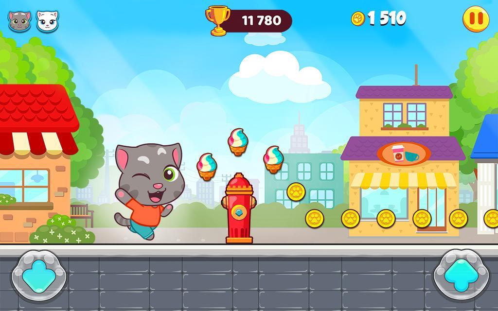 Tom cat is one of the most famous and beloved characters to mobile platforms. At this time, Tom decided to open up a cupcake shop, but someone robbed the place and scattered candy throughout the city and now to assemble the item back will not enough to run. And so, before us a new project called Talking Tom Candy Run in which you have in the role of Tom to run around town collecting pastries. In other words Talking Tom: trick-or-treating! it s an endless horizontal runner with excellent graphics and favorite characters.
