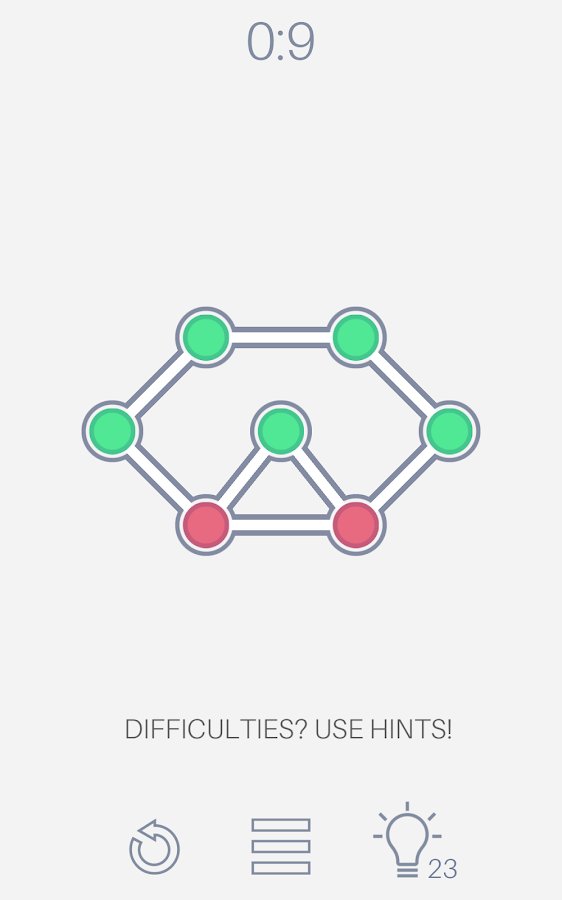 Joints. Ready to get smart! – addictive puzzle game where you will connect the intricate lines. In this game your main task is to swipe across the tops of the figures and thereby okachimachi in green. Connect your logic and intelligence and go through the levels in the minimum number of moves, gaining valuable rewards. All vertices connecting multiple lines will be painted in green color with one touch. Game players will appreciate the minimalist graphics, more than 144 levels, helpful tips and prizes.