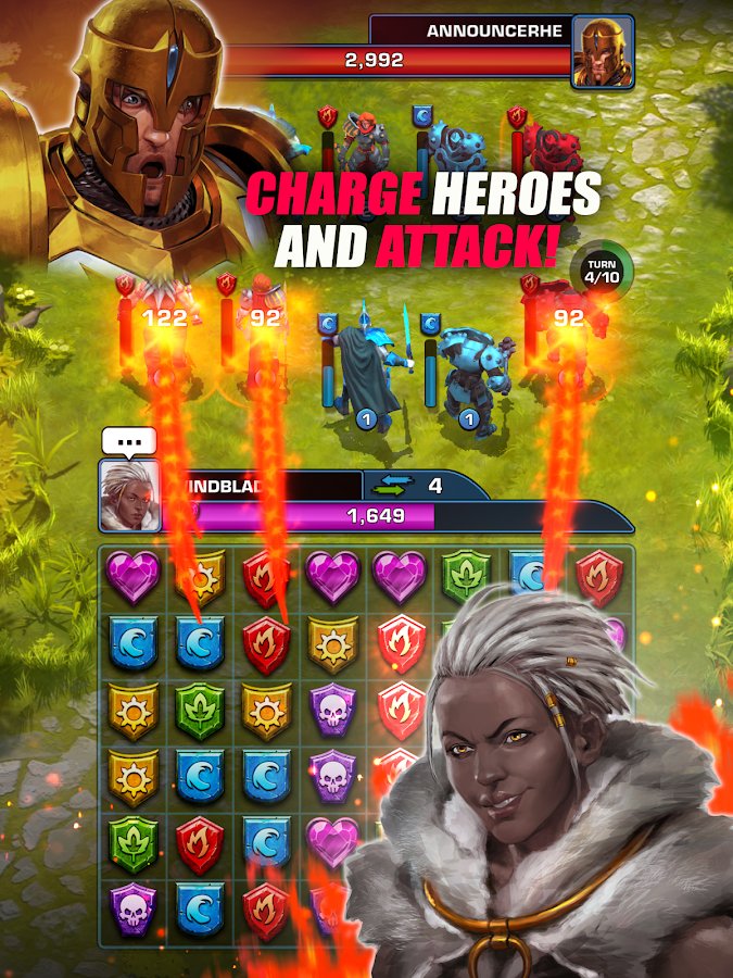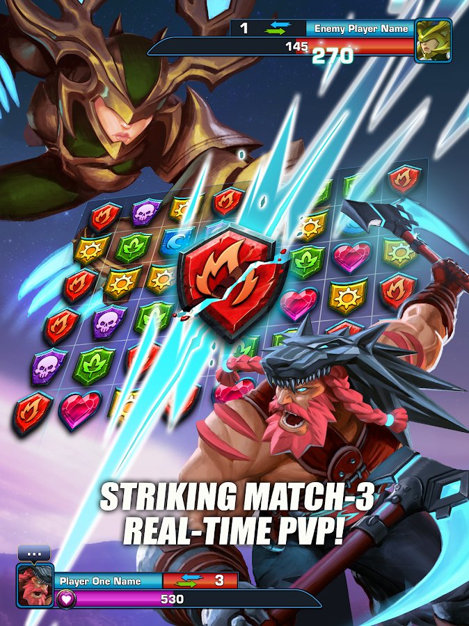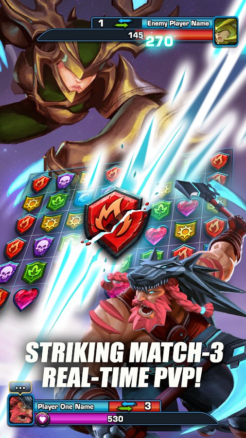 Match 3 Quest - cult role-playing game with arcade elements from the three in a row, despite the fact that the game came out already quite a long time interest in it is not lost to this day. In this case the light is regularly a huge number of different counterparts and clones, for example Duel : Puzzle Wars is one of those projects that deserve attention. Overall gameplay Duel : Puzzle Wars is almost completely copies the famous ancestor, however, the developers of the game implemented a number of interesting features, such as the ability to play online against real players.