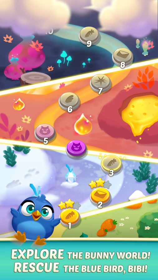 Bunny Pop 2: Beat the Wolf – fun game for Android where you will shoot multi-colored bubbles. In this game your main task is to shoot colored bubbles and help the rabbits to protect his bed with a carrot from the robber Fox. Train your agility and speed of fingers and shoot bubbles to match three or more balls in a row. Travel the magical and colorful worlds and earn as many points as possible. Complete all five missions of the game, and unlock all the costumes for rabbits.