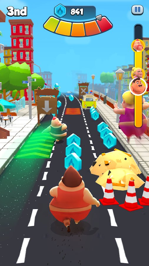 Fit the Fat 3 - the third part of the popular humorous runner the main hero of which was all already a favorite of tolstyachek. This time our hero decides to forget about the burgers and turn to sports, gathering around the house all the appropriate sports equipment, jump ropes, roller skates and so our chubby decides to start the process of weight loss with regular runs, this is what you will help him. As in the previous parts in trikvele you can expect excellent graphics and plenty of humor.