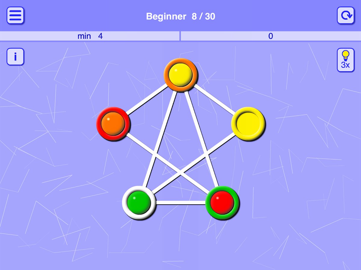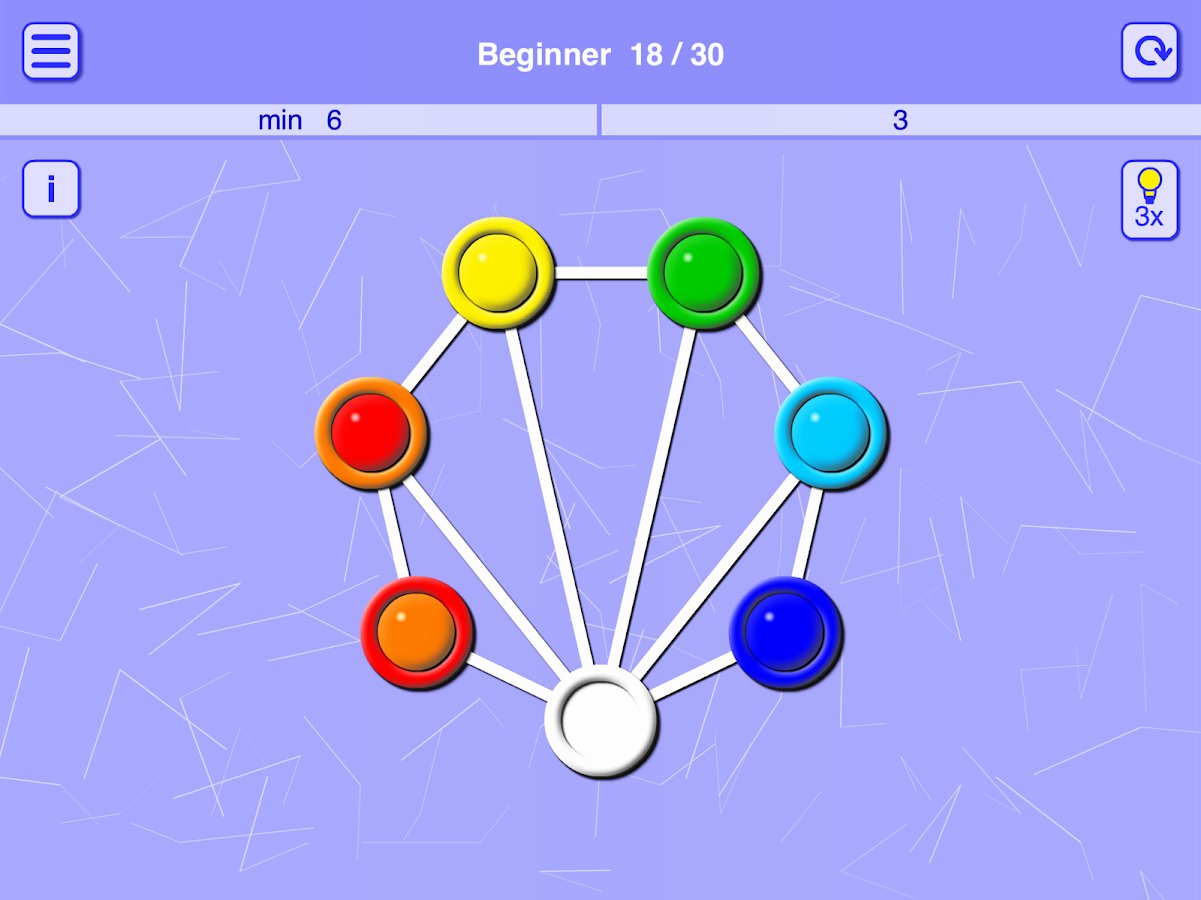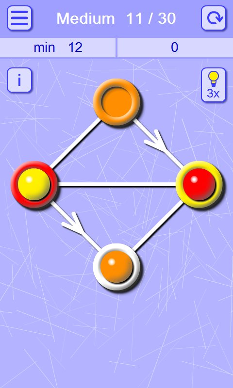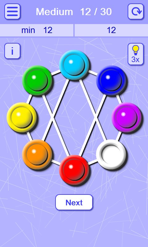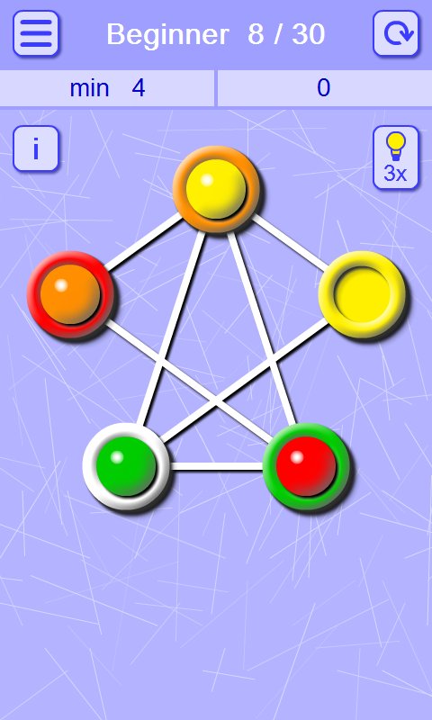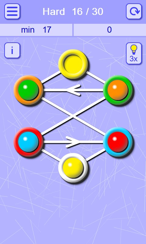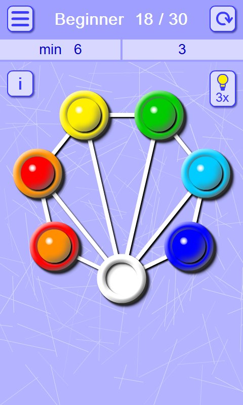 Matching Balls and Holes – an addictive puzzle game for Android where you will solve challenging tasks. In this game you have connecting your wit and logic to pass entertaining levels by moving the balls on the holes of the corresponding color. This puzzle has many variants of passing the levels, but your task will be to pass them in less number of moves. The wells are connected by lines and only on them you will be able to move the balls. The game will give you five difficulty levels, plenty of puzzles and simple controls.