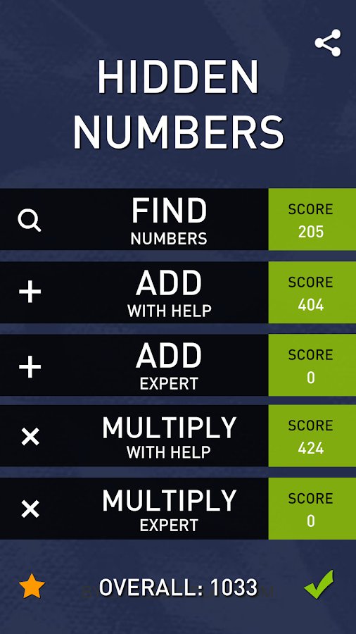 Hidden Numbers – a game on Android where you will practice mathematical computations and challenging task. Show your mathematical knowledge, making the counting numbers are located on the screen of your phone to collect the desired number. Train your wits and logic, and make the rows the desired number to the result to obtain the desired number. In the game you will find several game modes and will be able to enjoy a leisurely tasks. Solve mathematical puzzles and climb higher in the leaderboard.