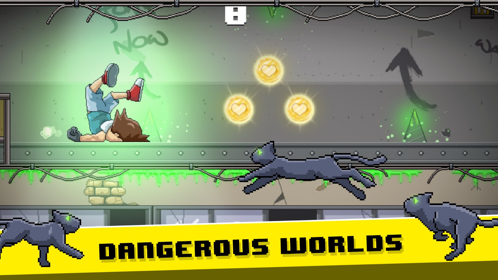 The Last Runner: Run fast and Jump high – runner for Android, where you control an adventurer Ray which penetrated an abandoned city. Our hero decided to explore the infected city in order to find the treasures. Run, jump and explore the streets, rooftops, and other locations while applying the skills of parkour. Avoid infected cats, radioactive water, and other obstacles on the way. In the game you will find two game modes, numerous unique locations and secret levels.