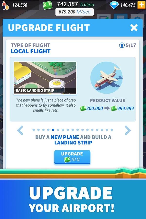 Idle Airport Tycoon - Tourism Empire - a fascinating game on the transport theme where the gameplay combines the elements of arcade clicker, economic simulator of real-time strategy. So, first you have to take control of a small airport and turn it into a major representative in the market, and you, in turn, must be rich, but how will you spend your savings you have to decide.