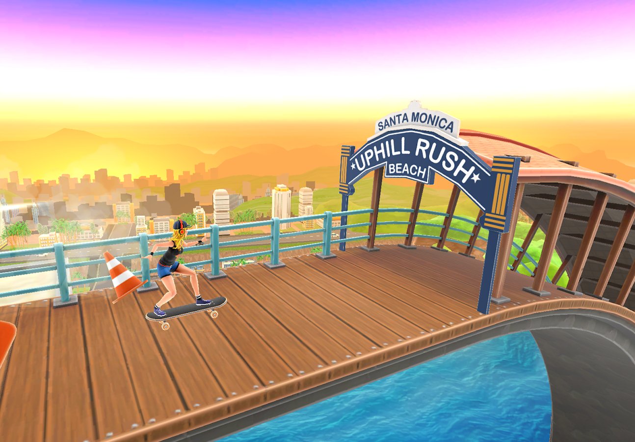 Uphill Rush Santa Monica Bay - the second part of a popular runner who won an enviable popularity with colorful graphics and stunning locations. In the second part, you still have choosing one of the available characters and boards to explore the tropical Islands. A wide selection of boards and the possibility of character customization significantly diversifies the gameplay.