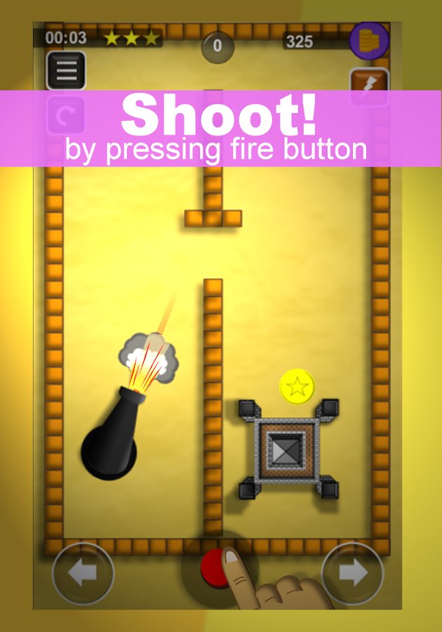 Bounce N Bang is a Physics Puzzle Premium Version is a game for Android, based on the laws of physics. In this game you will control the gun and try to release the shells so as to destroy the wooden box. With each new level complexity of game will increase and you will have pretty try to pass them all and get all the stars. Consider the physics of projectile that will bounce off of different objects. Along the way shell try to collect all stars and get higher score.