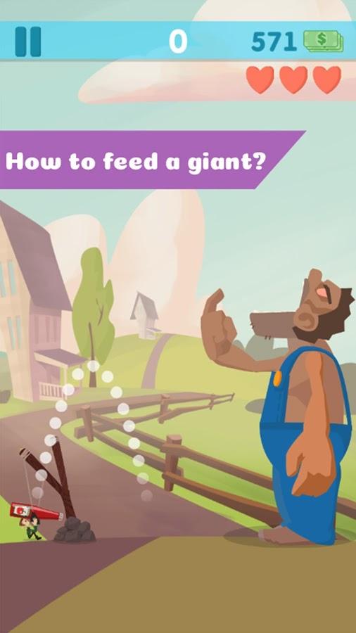 The Hungry Giant - a fun and addictive arcade game in which you need using the slingshot to send the food into the mouth of a giant, it is necessary not only to get into the mouth, but also to calculate the trajectory so that the food reached the target and was caught flying birds. Colorful hand-drawn graphics and fun mechanics will allow you to enjoy your free time.
