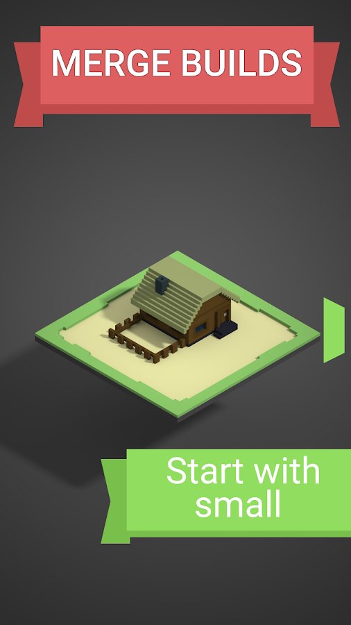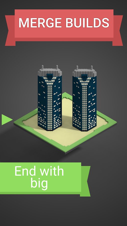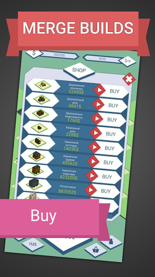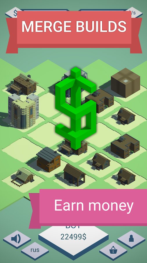 Merge builds – clicker on Android, where you will build a huge metropolis. In this building game your task will be to build on the place a small village to a huge metropolis. Create Vetka dugouts from huge shopping malls right in the middle of the former village. Every built you house will bring you income. The money from the construction you can spend on the construction of new homes and thus to accelerate the development of the city. Consider your actions very carefully and earn as much money as possible.
