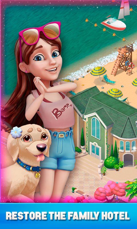 Resort Hotel: Bay Story – a fascinating game of the genre three in a row for Android, in which you ll elevate a private beach. In this game you are transported to a tropical island where you will play the role of a resort Manager, whose responsibilities will include the refinement and development of territories of shops, bars, restaurants and beautiful gardens. Create a variety of objects in rows and make improbable combinations to earn more money and build a huge hotel. The game will give players a great storyline, challenging levels and a multitude of different characters.