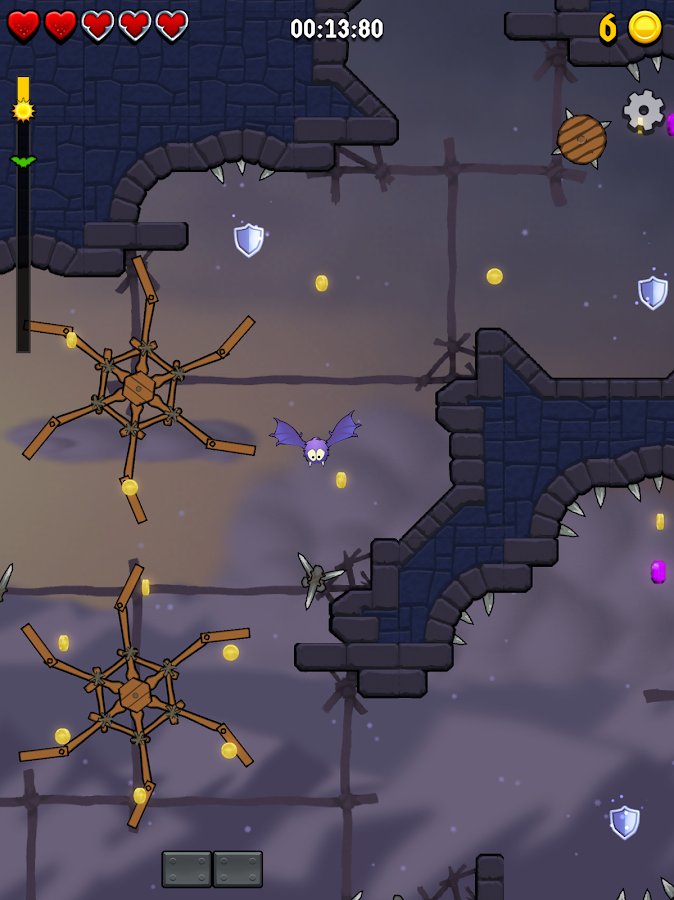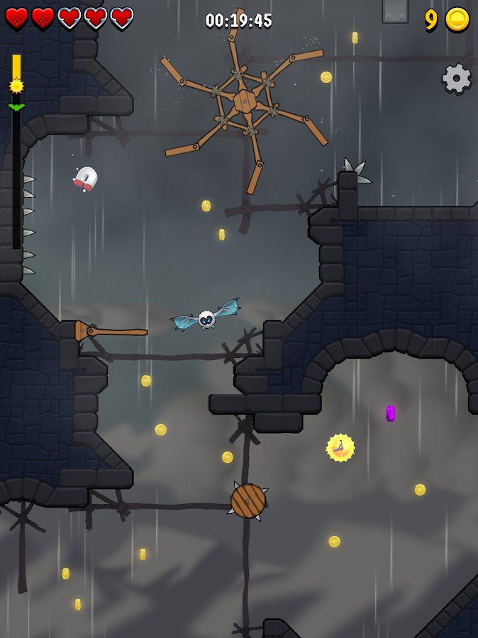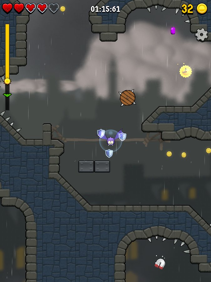 Fumble Fang – drive bat and help her to pass all the tests of the game. Your mouse is very clumsy and she needs your help to pass all the levels and avoid many obstacles. Fly through different locations of the city at night, dungeons and other levels and bonuses. Try to pass all the tests, until the sun comes up. Touch the screen in the right coins to guide the mouse in the right direction. Use shields, extra lives and other bonuses in the game and improve your collection with new characters.