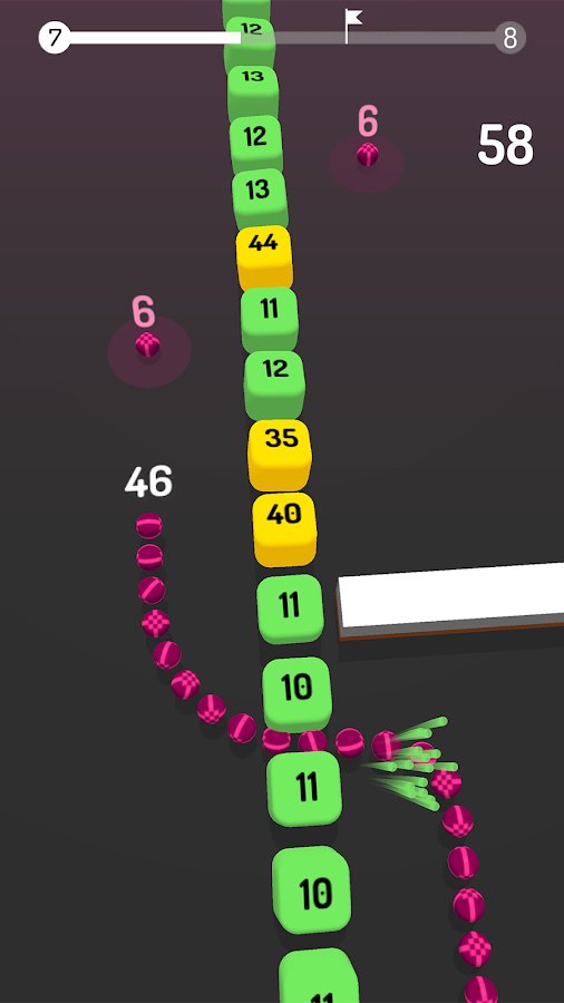 Line Tracer – control a snake which will move around the different levels and pass through blocks. Press the right point on the screen of your phone or tablet and force the snake to pass through the blocks, destroying them. The difficulty of the game is that units will have different strength. Destroying solid blocks you will lose the beads that make up the snake. Collect extra balls along the way and try to destroy the fragile blocks.