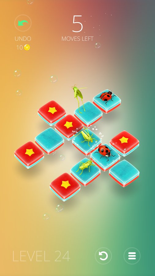 Humbug - Genius – it is a fascinating game, where you control different insects. In this game your task is to move the grasshoppers, spiders, butterflies and ladybugs on the cell and collect the stars. Collect all the stars in the minimum number of moves and go to the next level. Each insect in this game has its own unique abilities, some can only move forward, others can jump over obstacles and fly. Consider your actions very carefully and cancel the course in case of failure.